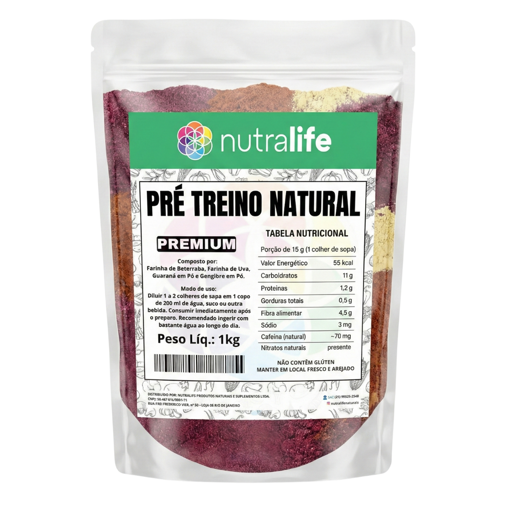 O Pré-Treino Natural 4 em 1 da Nutralife é a solução ideal para quem busca performance máxima sem abrir mão da praticidade. Unimos quatro dos ingredientes naturais mais potentes em um único blend homogêneo: Beterraba, Uva, Guaraná e Gengibre. Diferente de misturar os componentes manualmente, nosso blend já vem na proporção exata para garantir a máxima sinergia entre os ativos, proporcionando energia imediata, foco mental e uma vasodilatação eficiente para treinos intensos.